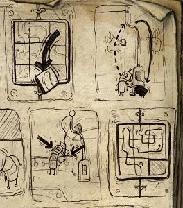- 1. - Part 1: when the Puzzle Piece tile at the top right corner of the puzzle is clicked, this tile will fall onto the ground. The robot Bird will fly down from the top of the electricity pole, pick up the tile and fly back to the top of the pole with it. To get the tile back the player will have to make Josef stand on the middle of the bridge. The robot Bird will settle on the overhead electricity wire above Josef. The player should then make Josef go tall and small and keep doing this for a time. The robot Bird will copy Josef and start to bounce up and down on the wire. The robot Bird will at some point break the overhead wire and drop the puzzle tile. Josef can then pick it up to be used when the puzzle has been completed.